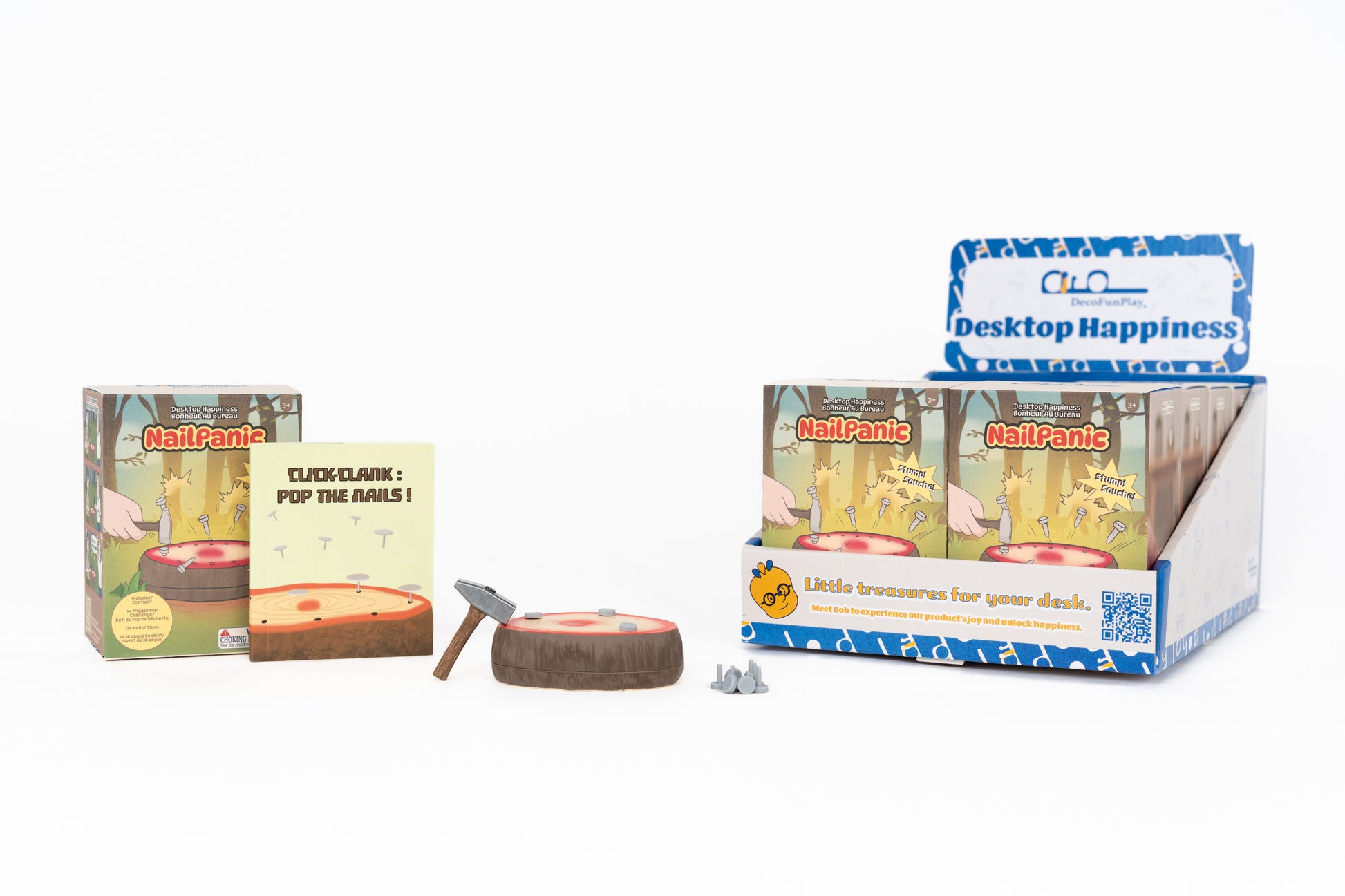 Inspired by the classic drinking game, NailPanic brings the thrill—no splinters. Take turns hammering, but beware: one nail triggers a spring-loaded eruption. Will you be the last to strike before it blows?